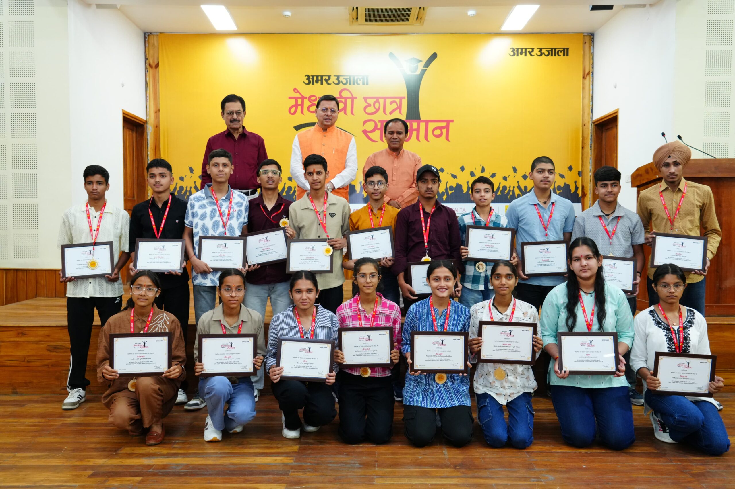 मुख्यमंत्री श्री पुष्कर सिंह धामी ने मंगलवार को मुख्यमंत्री आवास स्थित मुख्य सेवक सदन में मेधावी छात्र सम्मान समारोह में उत्तराखण्ड माध्यमिक शिक्षा बोर्ड के हाईस्कूल और इण्टरमीडिएट के 75 मेधावी छात्र-छात्राओं को सम्मानित किया। अमर उजाला समाचार पत्र द्वारा आयोजित कार्यक्रम में मुख्यमंत्री ने कहा कि इस सम्मान समारोह के माध्यम से अमर उजाला प्रतिवर्ष हमारे राज्य के प्रतिभावान छात्रों को सम्मानित कर उनका उत्साहवर्धन कर रहा है।