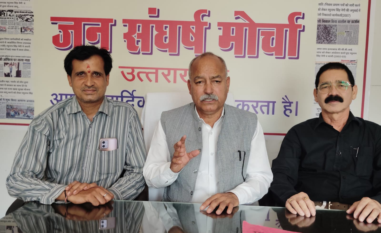 गोल्डन कार्ड लिए अस्पतालों के चक्कर काट रहे कर्मचारियों, सरकार बेसुध- मोर्चा #गरीब कर्मचारी इलाज के लिए दर-दर की ठोकरें खाने को मजबूर ! #हर मोर्चे पर विफल हुई सरकार | #सरकार को सिर्फ है माफियाओं की चिंता | विकासनगर- जन संघर्ष मोर्चा अध्यक्ष एवं जीएमवीएन के पूर्व उपाध्यक्ष रघुनाथ सिंह नेगी ने पत्रकारों से वार्ता करते हुए कहा कि प्रदेश के गोल्डन कार्ड धारक कर्मचारी/अधिकारी अपना इलाज कराने के लिए दर-दर की ठोकरें खाने को मजबूर हैं, लेकिन सत्ता के नशे में चूर सरकार को इन कर्मचारियों की पीड़ा दिखाई/ सुनाई नहीं देती |अधिकांश अस्पताल इन कार्डों पर इलाज करने से मना कर रहे हैं, क्योंकि सरकार अब तक इन अस्पतालों को भुगतान नही कर पायी | हर मोर्चे पर विफल सरकार को सिर्फ माफियाओं के हक – हकूकों की चिंता है. मोर्चा शीघ्र ही कर्मचारियों के हितों को लेकर आंदोलन करेगा | पत्रकार वार्ता में- मोर्चा महासचिव आकाश पंवार व प्रवीण शर्मा पिन्नी मौजूद थे |