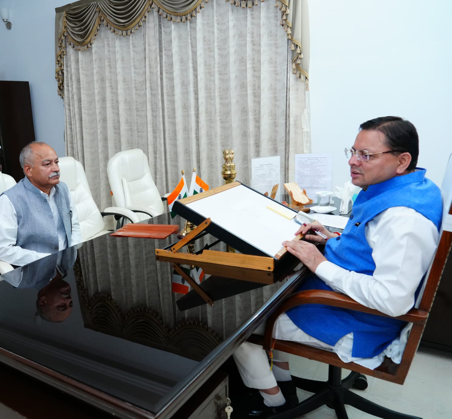 देहरादून- जन संघर्ष मोर्चा अध्यक्ष एवं जीएमवीएन के पूर्व उपाध्यक्ष रघुनाथ सिंह नेगी ने हाल ही में आमजन की पीड़ा को लेकर सुबे के मुख्यमंत्री मा. पुष्कर सिंह धामी से भेंट कर प्रदेश भर में अधिकारियों द्वारा बरती जा रही लापरवाही व ढींगा मस्ती को लेकर वार्ता की | श्री धामी ने तत्काल अपने अमले के भी पेंच कसे एवं व्यवस्था में सुधार लाने हेतु अधिकारियों को टाइट करने की बात कही | नेगी ने कहा विभागीय मंत्रियों/ अधिकारियों के गठ जोड़ के चलते अधिकारी आमजन की पीड़ा को समझना तो दूर उनकी बात सुनने को भी तैयार नहीं हैं | कौन सा मामला कितना गंभीर है व पीड़ित व्यक्ति कितना परेशान है, उससे अधिकारियों का दूर-दूर तक कोई वास्ता नहीं |कई बार आम जनमानस की पत्रावलियां/ उनके छोटे-मोटे काम से संबंधित पत्र एक पटल से दूसरे पटल पर पहुंचने में महीनों लगा देते हैं एवं कई बार पत्र ढूंढे नहीं मिलते | हालात यह हो गए हैं कि अधिकारी सुविधा शुल्क के इंतजार में पत्रावलियों को कूडे का ढेर बना देते हैं | मोर्चा को भरोसा है कि व्यवस्था में परिवर्तन होगा, जिसके फलस्वरुप आमजन को न्याय मिल सकेगा |